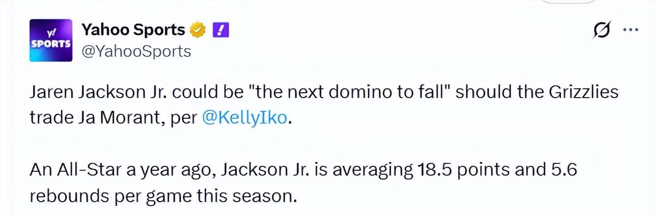 北京时间1月13日,据名记Kelly Iko报道,鉴于考沃德、扎克-伊迪、杰伦-威尔斯和卡姆-斯宾塞等年轻球员的亮眼表现,灰熊管理层决心将建队重心转向培养新人。在与其他球队高管交流时,一种观点逐渐升温:即便灰熊坚称小贾伦-杰克逊是球队未来的核心,且他的球风与莫兰特形成鲜明互补,但如果莫兰特的交易最终达成,小杰克逊可能会成为下一个被摆上货架的球员。